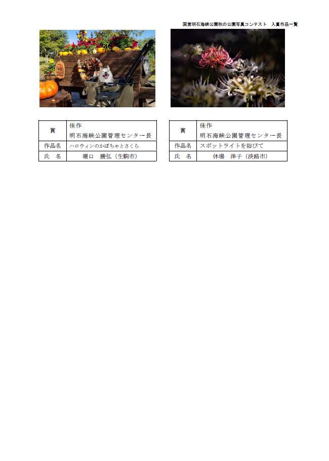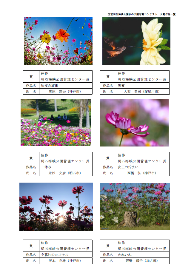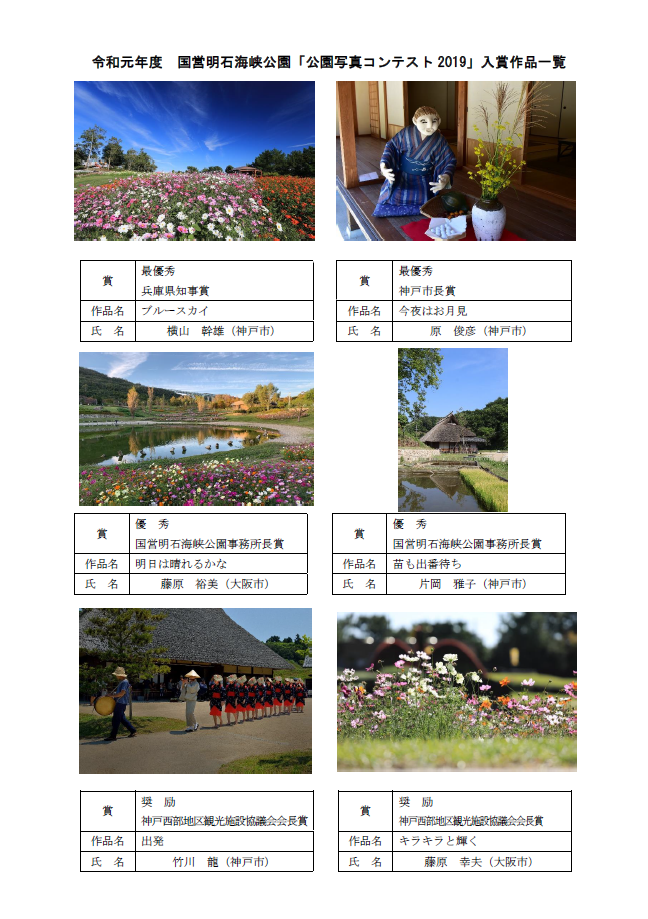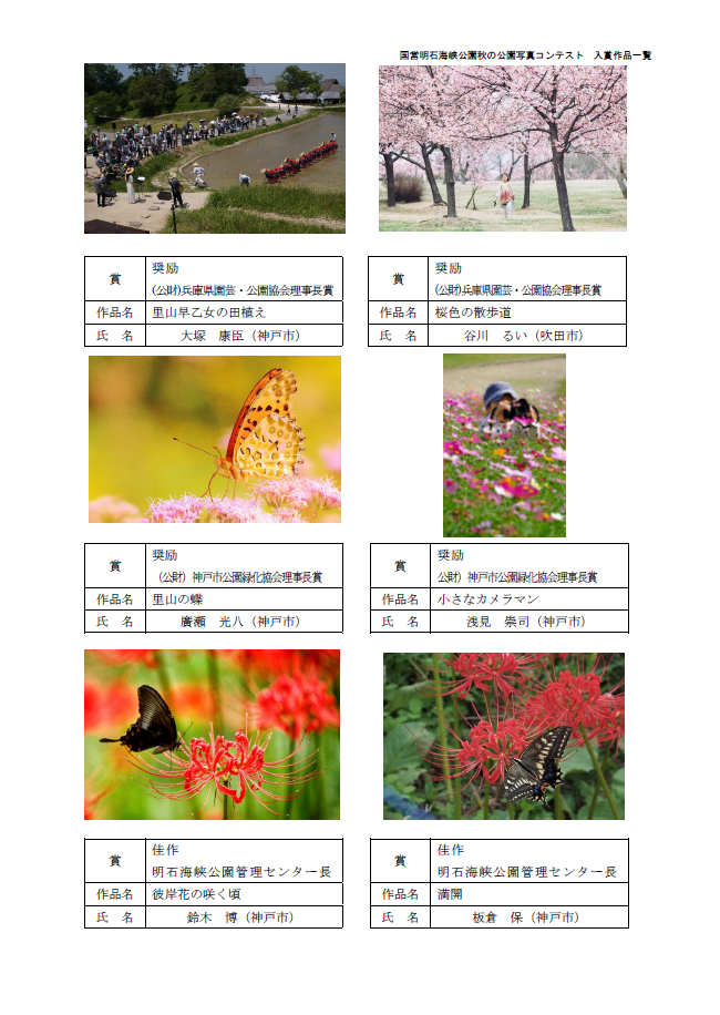 11/27(水)の審査会(審査委員:武田峻彦氏他7名)で、審査対象 35人 111点の作品の中から20作品(最優秀2点、優秀2点、奨励6点、佳作10点)が入賞作品として選ばれました!おめでとうございます。どれも、公園の美しさ、楽しさを表現した素晴らしい作品ばかりです。