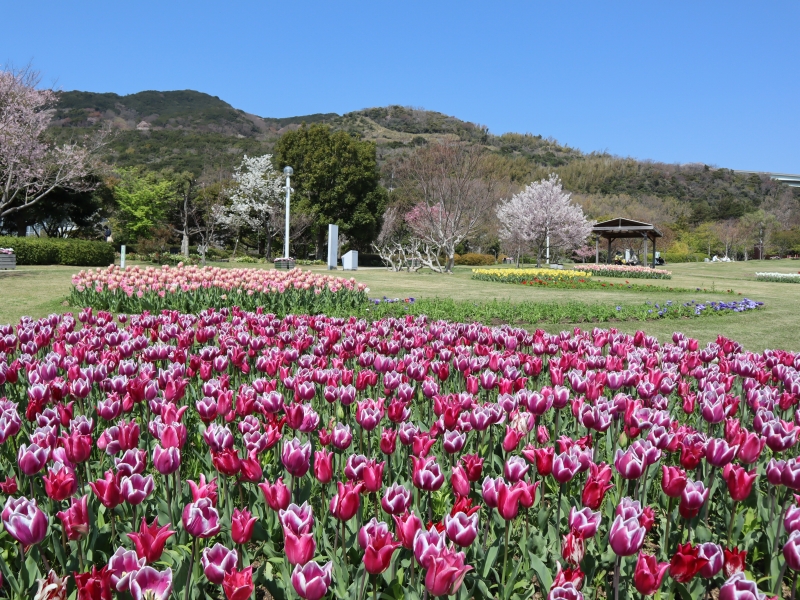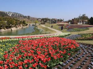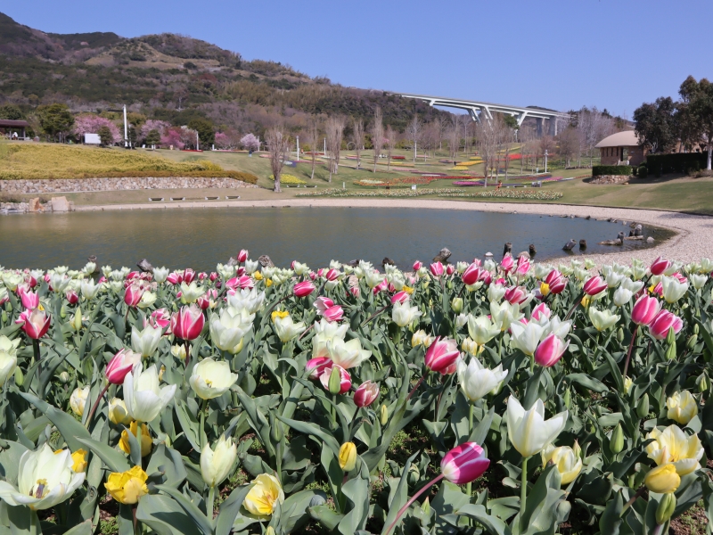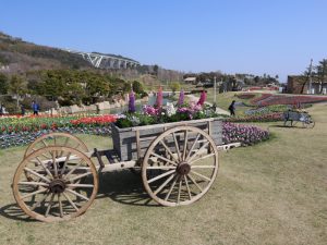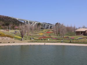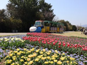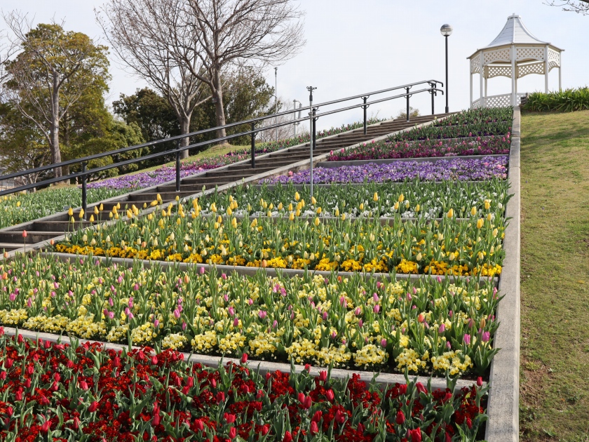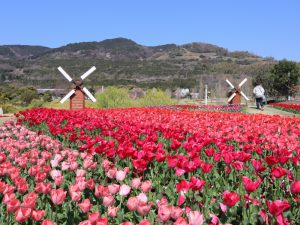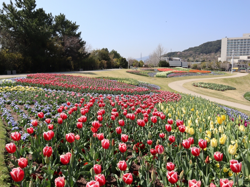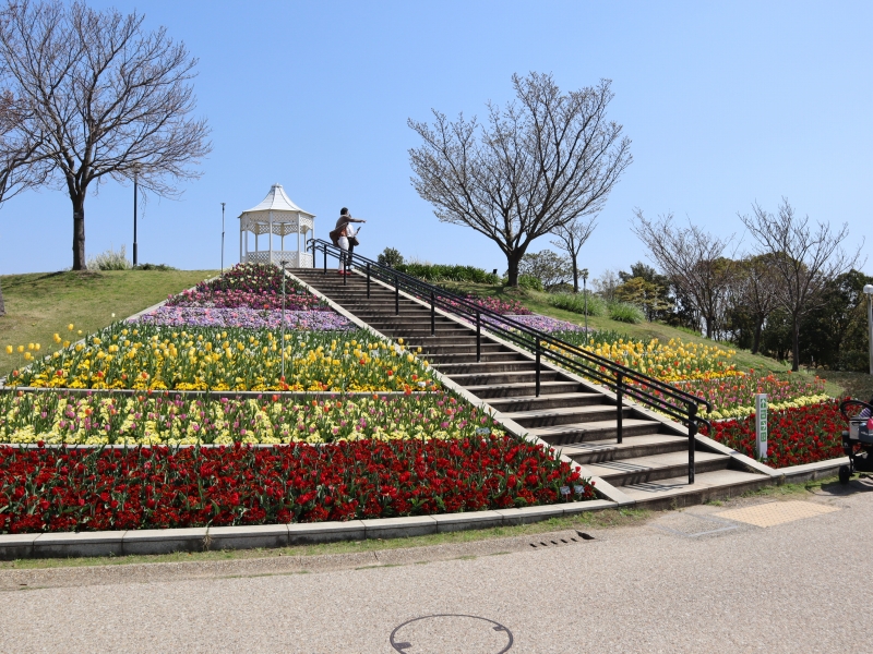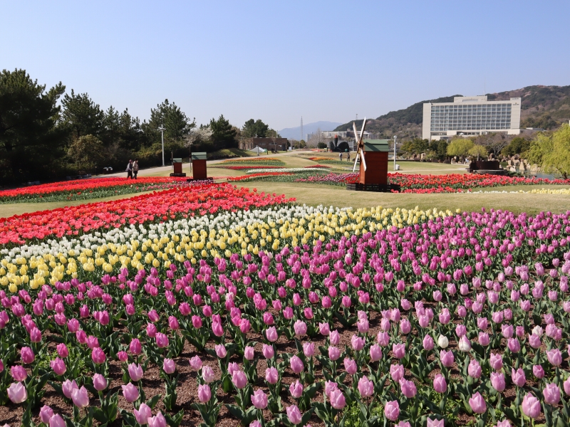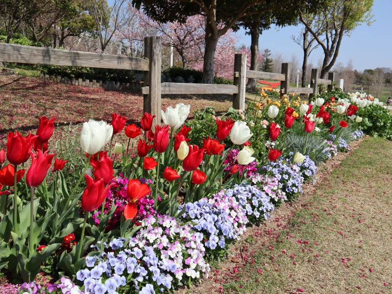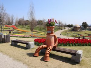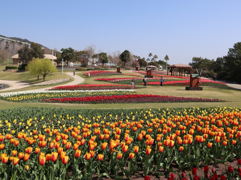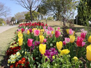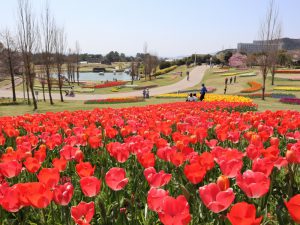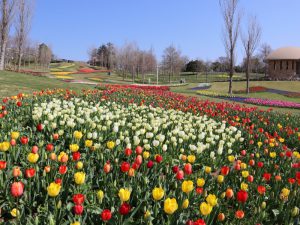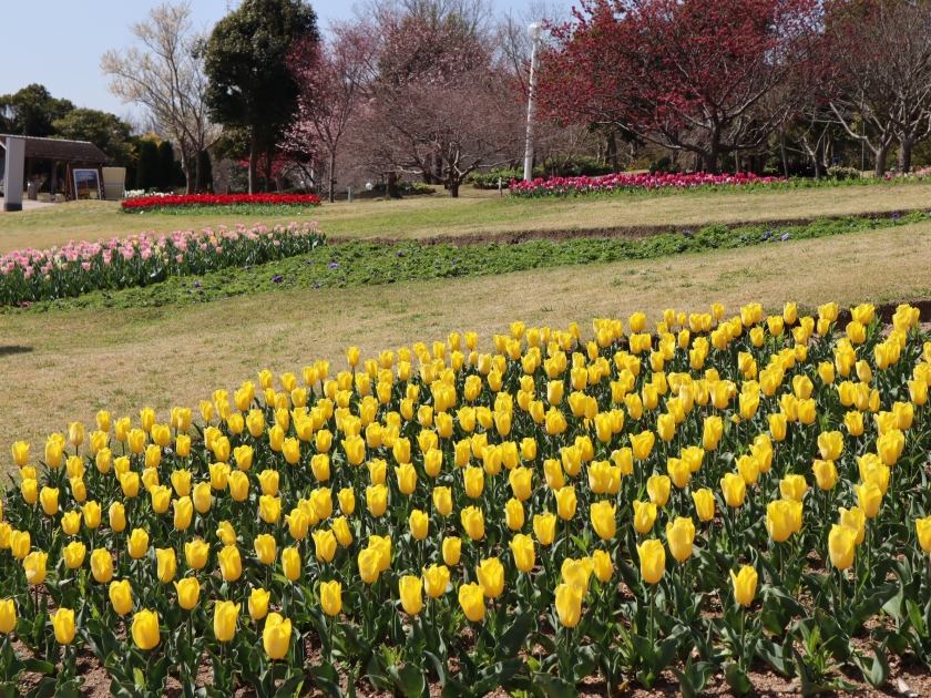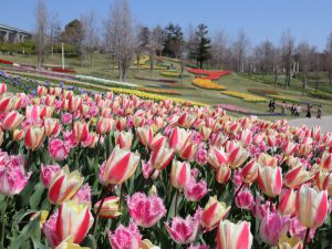 花の丘道でも超早咲きのチューリップが楽しめます。東浦口ゲートからポプラの丘まで花を見ながら歩くと、あっという間に着きますよ!