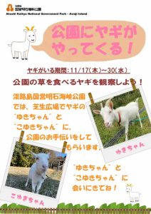 芝生広場で、ヤギの“ゆきちゃん”と“こゆきちゃん”が、除草作業