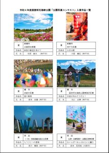 また、入賞作品は、12月18日(日)から令和5年2月28(火)まで 淡路島国営明石海峡公園 海のテラス休憩所パークギャラリーで展示します。