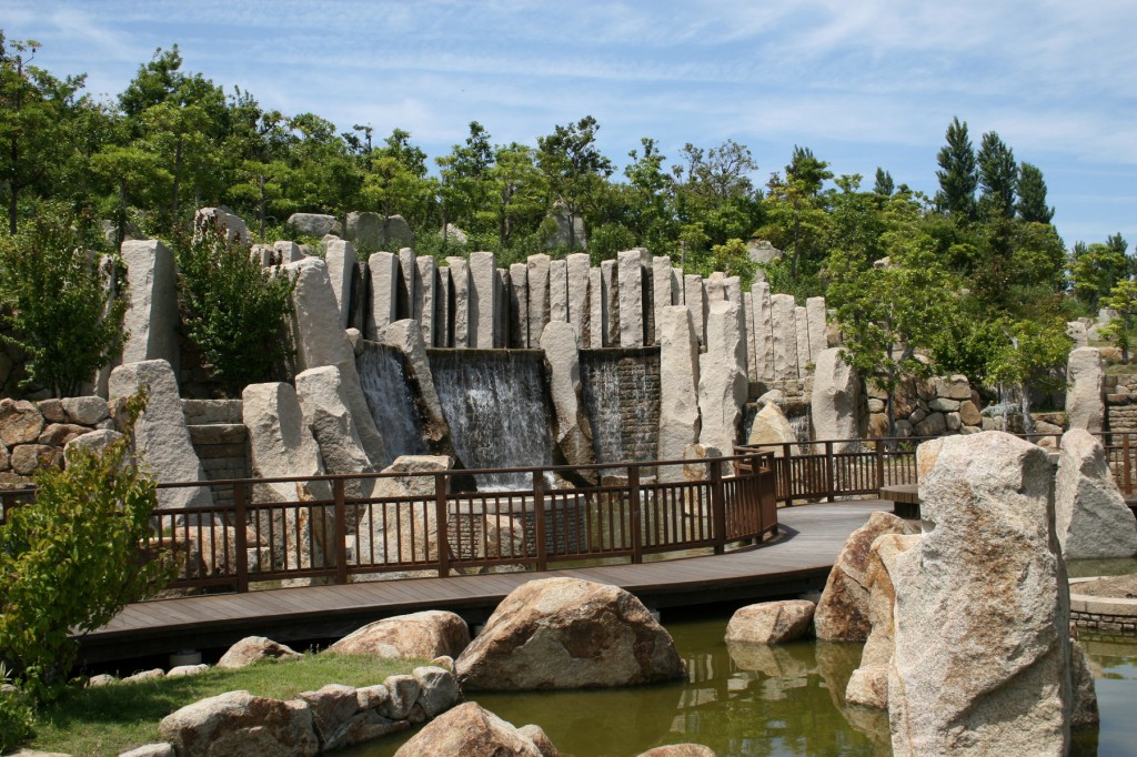 七条瀑布沿着栈道排开。在这里可以悠闲地在水边散步。