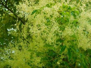 木の高いところで上向きに咲いているため、多分木の下を通っていても気づかない人が大半だと思います。しかし気づいちゃうと「近くで見たい!」と思っちゃうくらいキラッキラ。