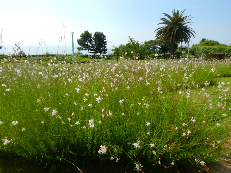 海岸口ゲートそばの一帯で、爽やかに揺れるガウラが見ごろです。ここは大規模に植えてありますが、園内の他の場所でも小規模でチョコチョコ咲いています。