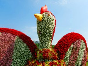 立体花壇「花火鳥」&「タコトピアリー 」のベゴニア(場所:大地の虹/東浦口ゲート前)