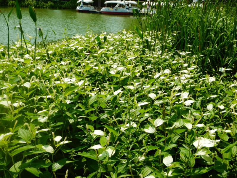 ◆ハンゲショウを筆頭とした水辺の草花たち:見ごろ(場所:花の中海周辺(東浦口ゲートそば~立体花壇「花火鳥」そば))