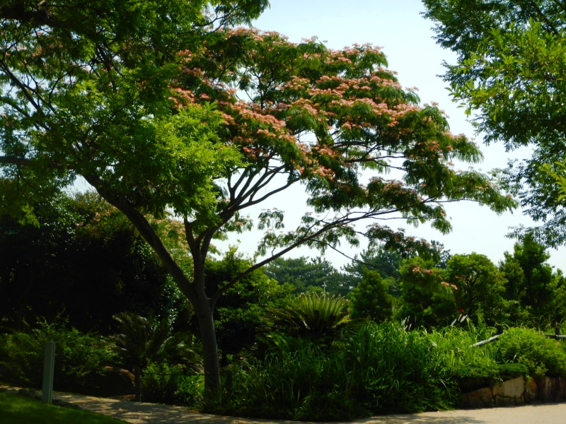 ネムノキ(合歓の木)(場所:花の島から滝のテラスに向かう道沿い、花の谷ほか)