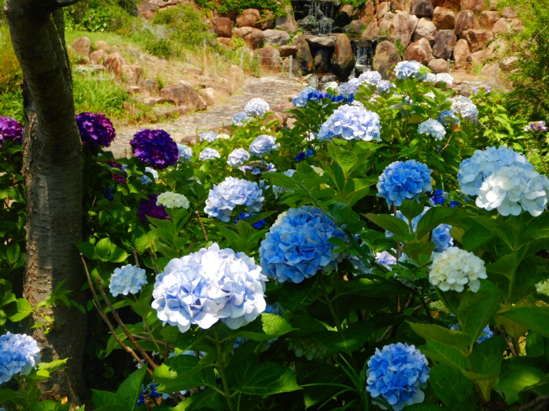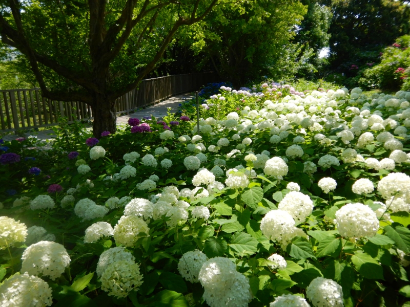 ◆普通のアジサイ:見ごろ、アナベル:見ごろ(場所:空のテラス周辺・せせらぎ広場・水の棚田周辺ほか)