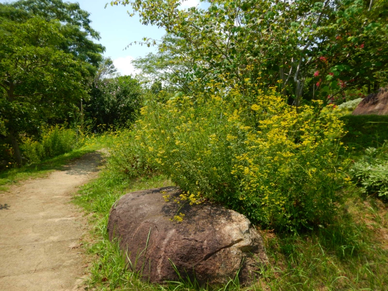 花が終わったといっても、花茎は数年間残りますので(去年の1本も残っています)、せせらぎ橋の上から空のテラス方面を眺めると5本バッチリ見えますよ。