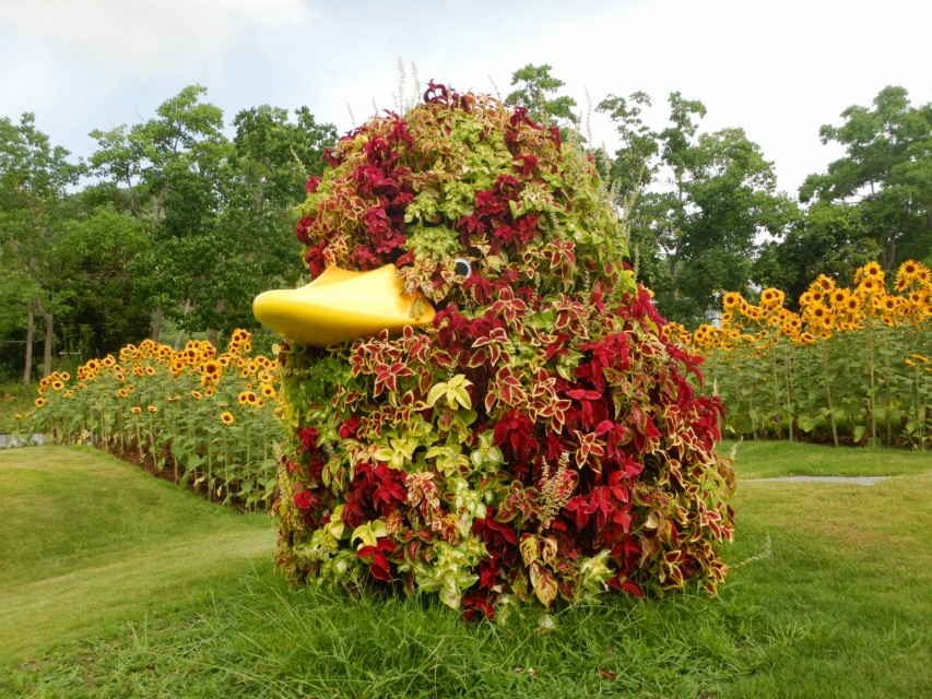 立体花壇「アヒル」のコリウス(場所:大地の虹北花壇そば)