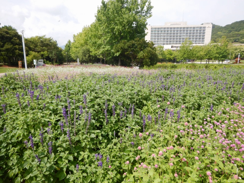 大地の虹北花壇とポプラの丘で、いろいろな品種が見ごろです。お盆まではきれいなお花を楽しんでいただけるのではと思っています。
