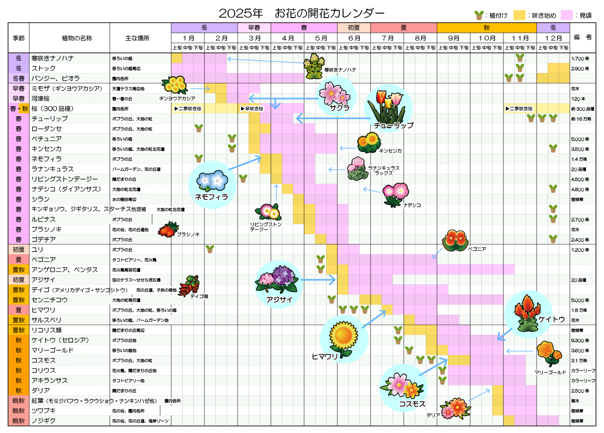 ◆2025年 お花の開花カレンダー(2025.1.6更新)