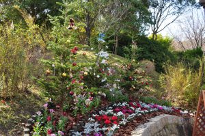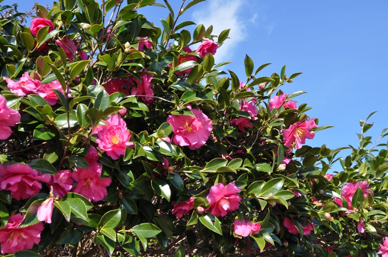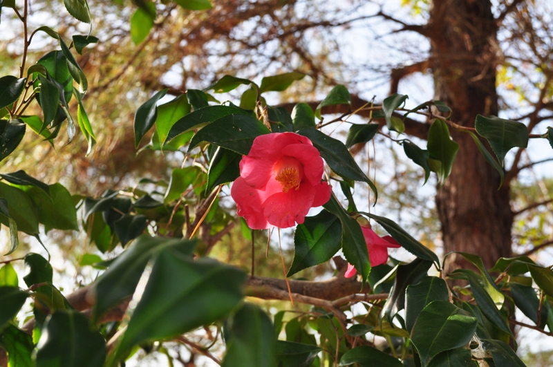 花の谷周辺 鮮やかな赤や白色 ツバキ(椿)