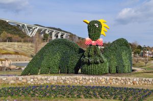 立体花壇「花火鳥」・「タコトピアリー」他 赤白青とカラフル ビオラ