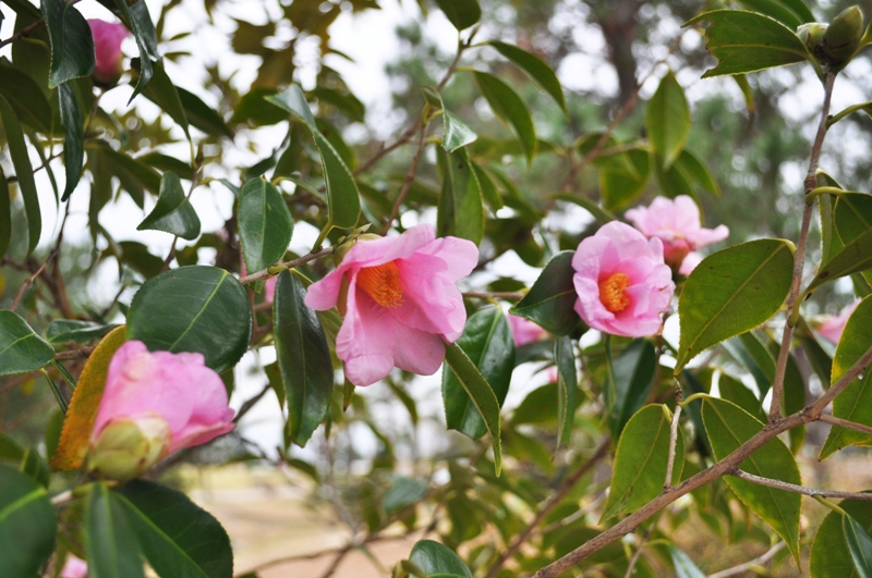花の谷周辺 鮮やかな赤や白色 ツバキ(椿)