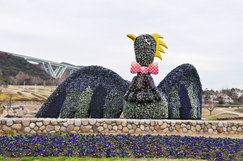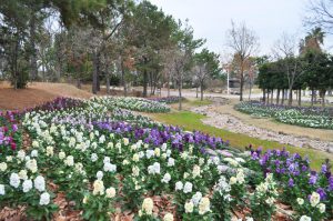 立体花壇「花火鳥」・東浦口ゲート「花のれん」他 赤白青とカラフル ビオラ