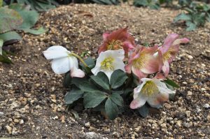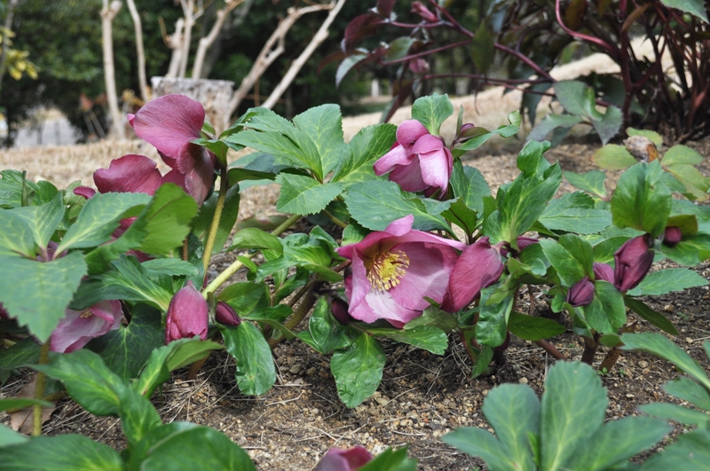 花の丘道(クリスマスローズガーデン)にて白花の原種系クリスマスローズ・ニゲルなどが咲き始めています。これから春にかけて様々なクリスマスローズがご覧いただけます。