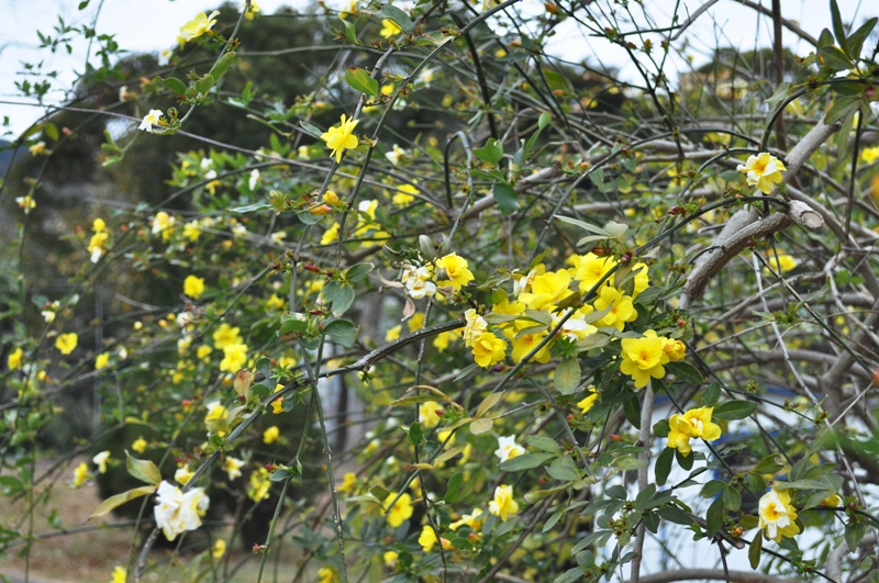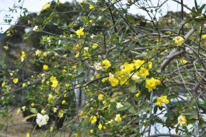 花の丘道 枝垂れた枝に黄色のお花 ウンナンオウバイ(雲南黄梅)