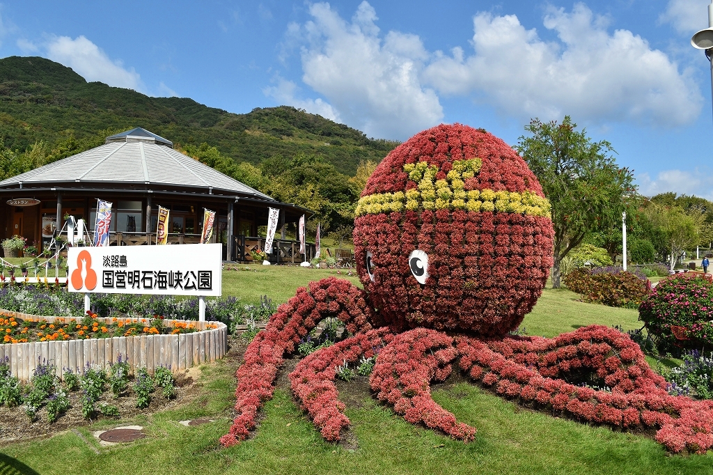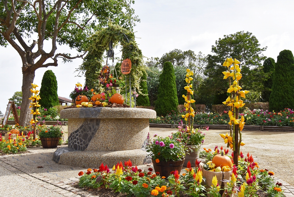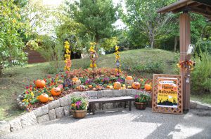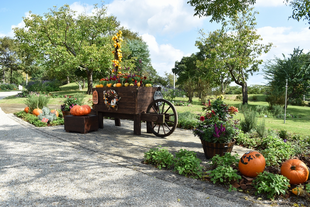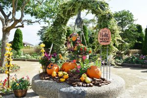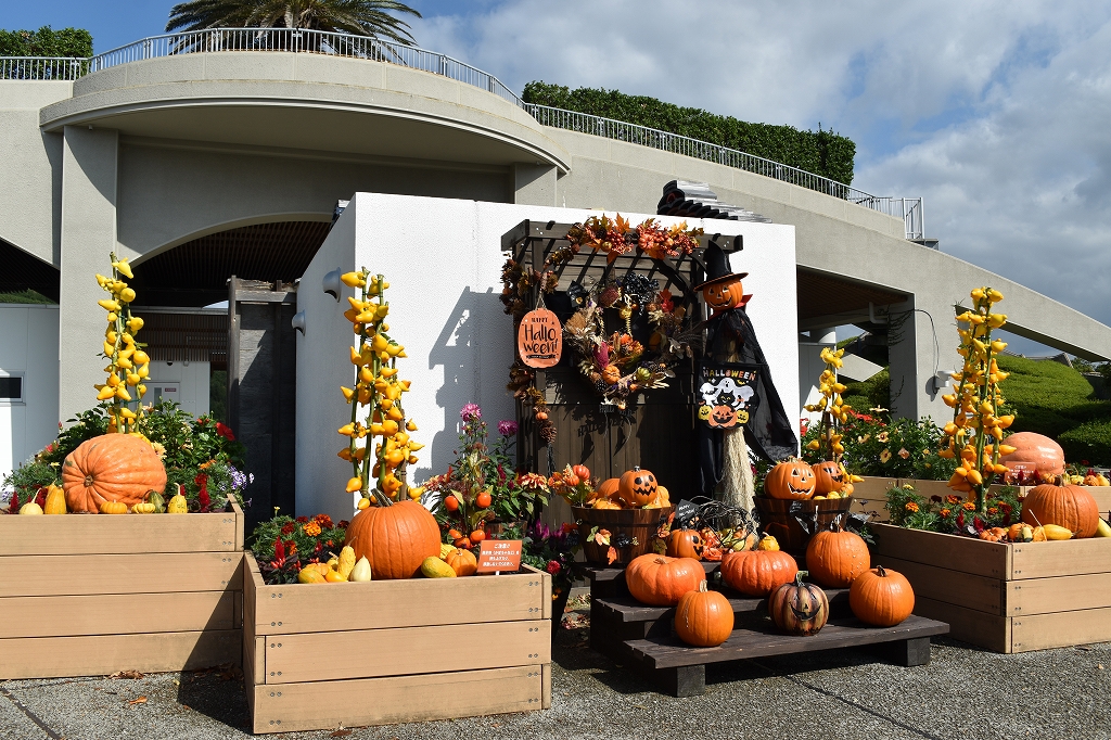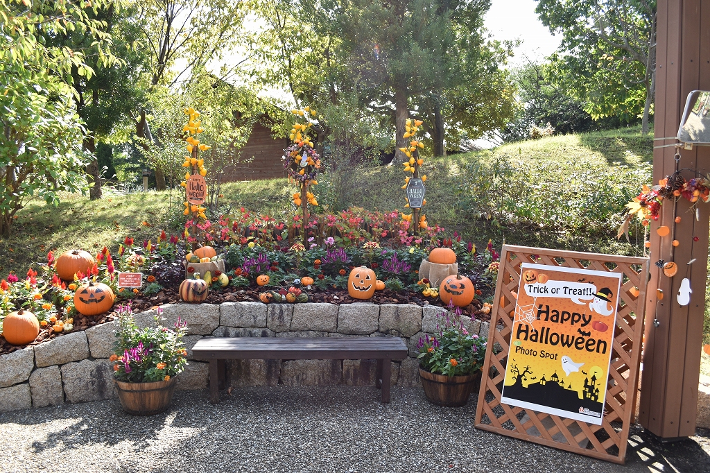 東浦口・連絡口・淡路口ゲートと花の丘道沿いに、大きなカボチャやフォックスフェイスなどで飾ったハロウィンフォトスポットが登場しました。
