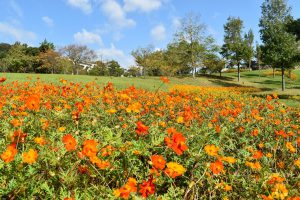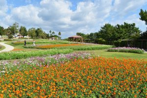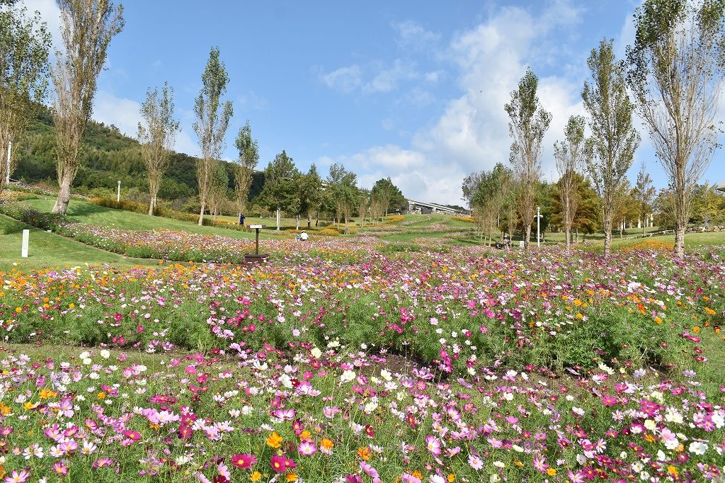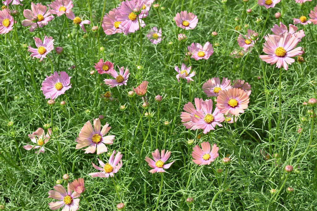大地の虹(北)エリア コスモスは見頃 暖色が混じったコスモス キャンパスオレンジ