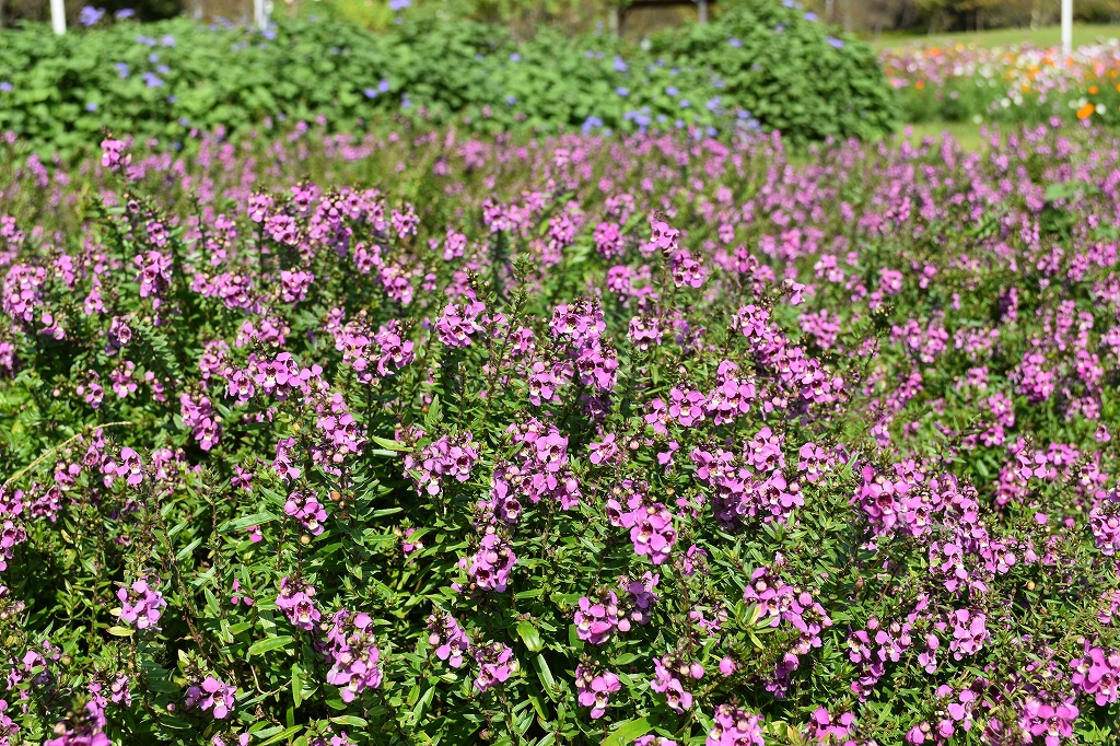 花の丘道・ポプラの丘他 青桃白の小さなお花がたくさん アンゲロニア