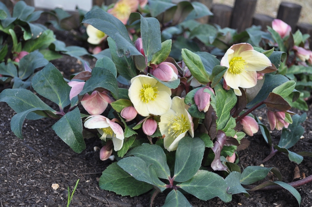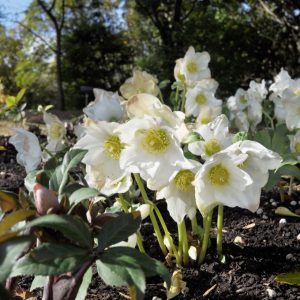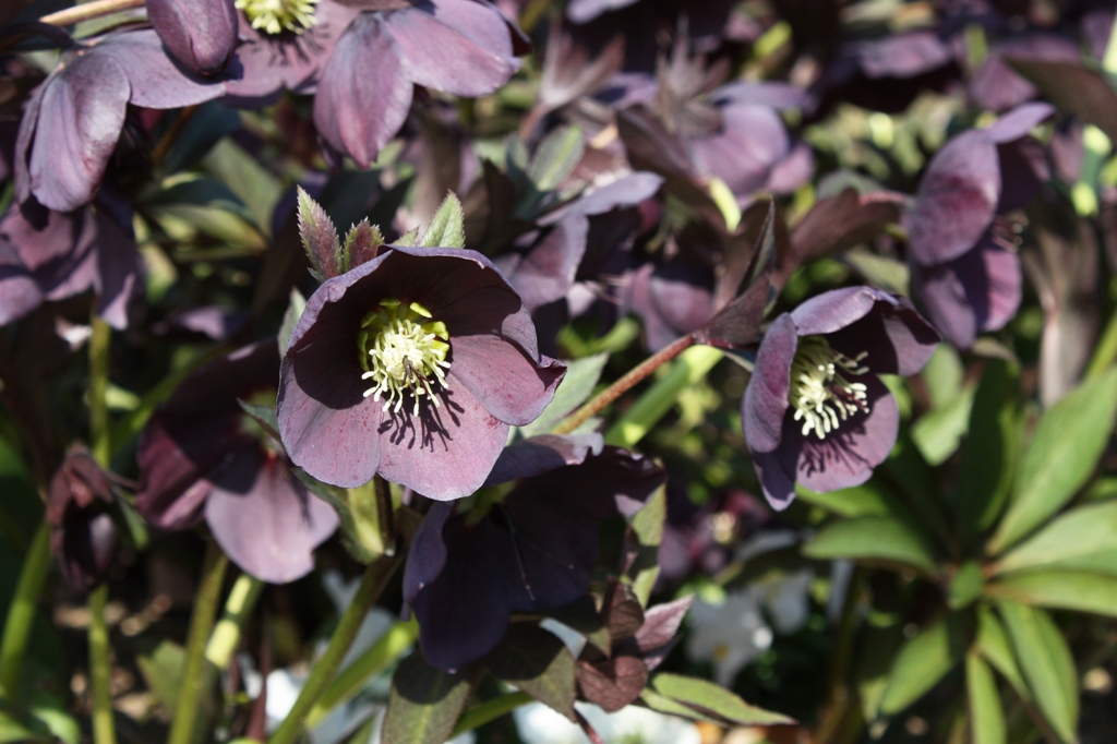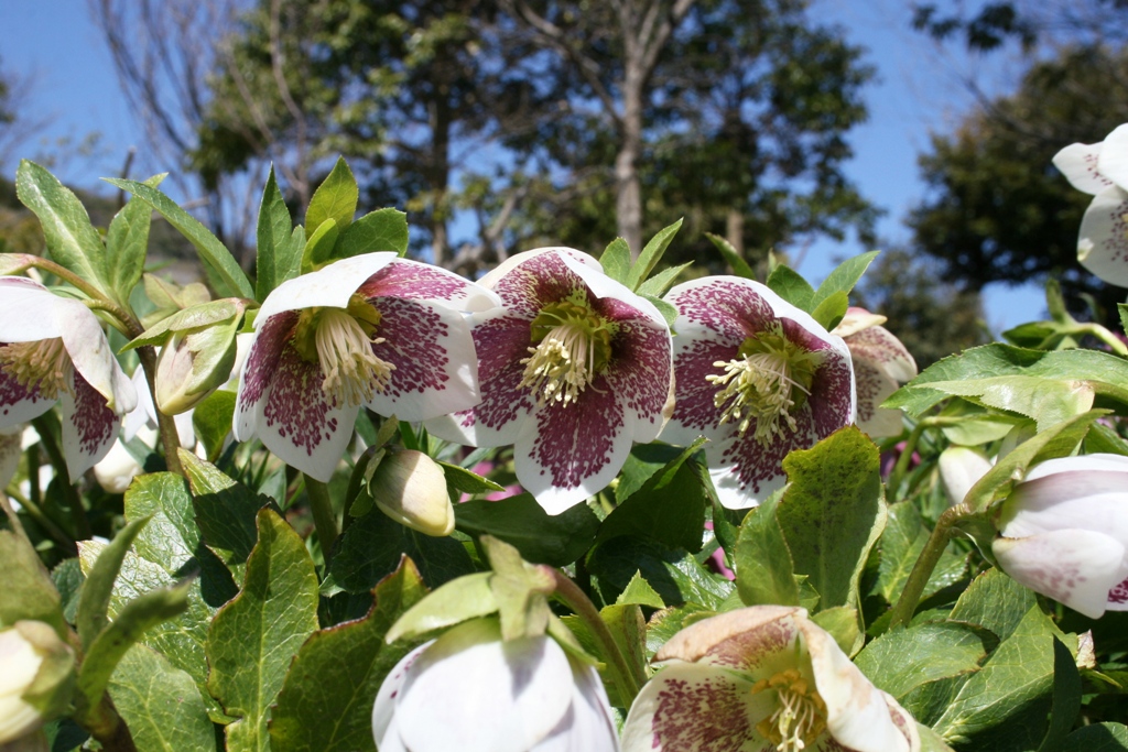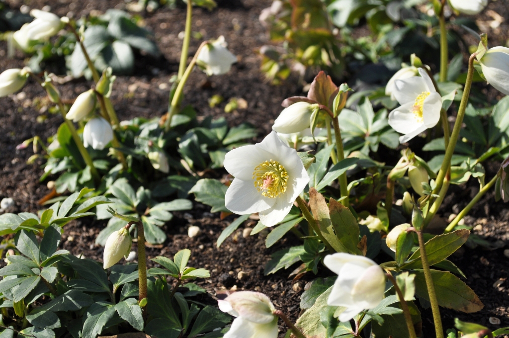 ニゲルとアーグティフォリウスから生まれた淡緑色のニゲルコルスや、ニゲルとリヴィダスから生まれた葉の模様が綺麗なバラーディアエなど、2月から見頃になるクリスマスローズです。