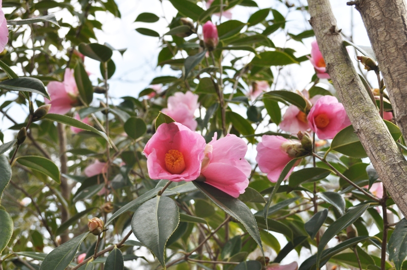 花の谷周辺 鮮やかな赤や白色 ツバキ(椿)