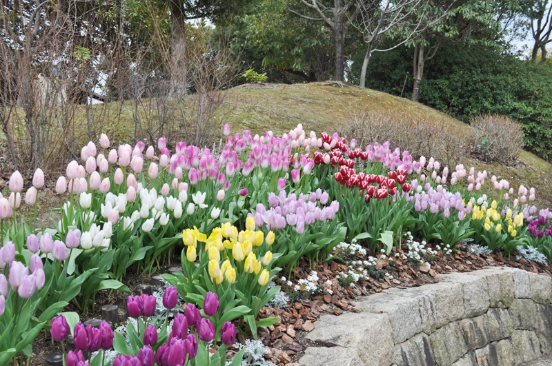チューリップ・ムスカリの開花は3月中旬頃から、見頃は4月上~中旬頃となっています。