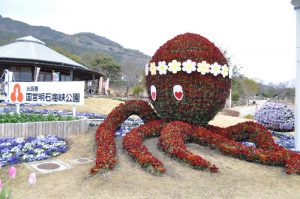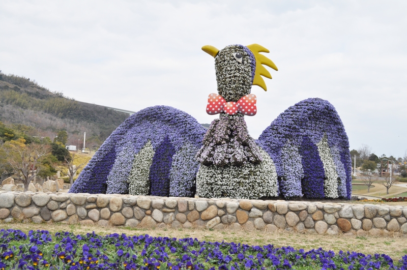 立体花壇「花火鳥」・「タコトピアリー」他 赤白青とカラフル ビオラ