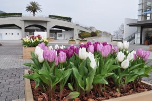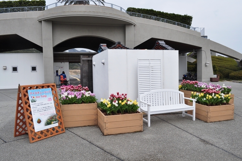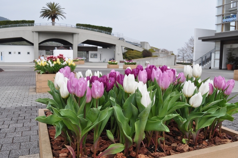 淡路口ゲート~ビジター棟前のマス型の花壇と連絡口ゲート周辺で、「アイスチューリップ」がご覧いただけます!