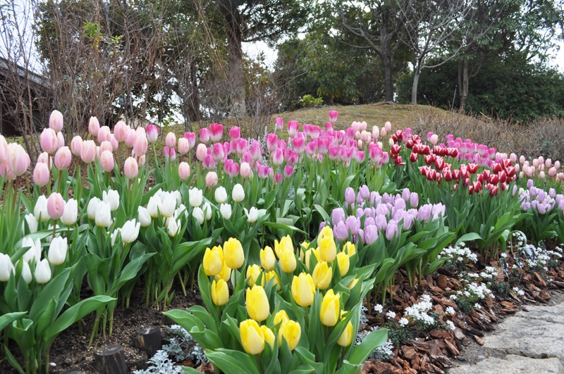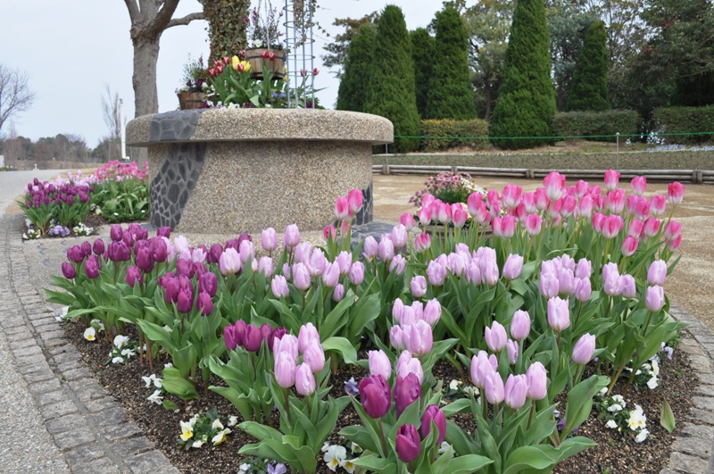 チューリップ・ムスカリの開花は3月中旬頃から、見頃は4月上~中旬頃となっています。