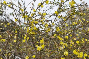 花の丘道 枝垂れた枝に黄色のお花 ウンナンオウバイ(雲南黄梅)