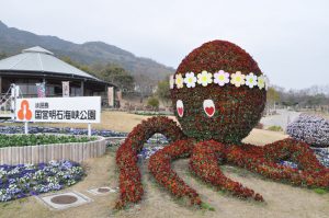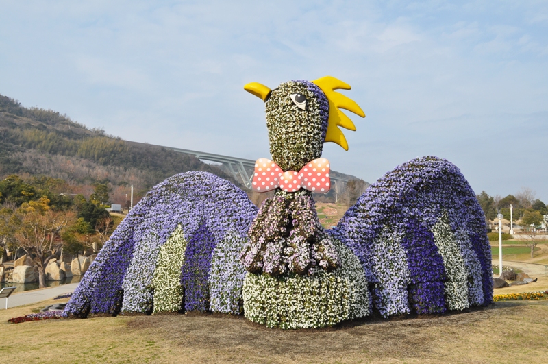 立体花壇「花火鳥」・「タコトピアリー」他 赤白青とカラフル ビオラ