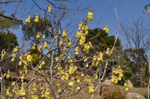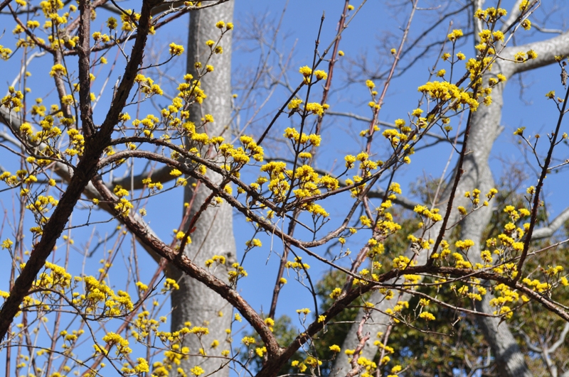 花の谷 上向きに咲く黄色いお花 サンシュユ(山茱萸)