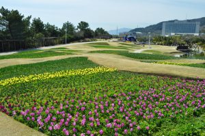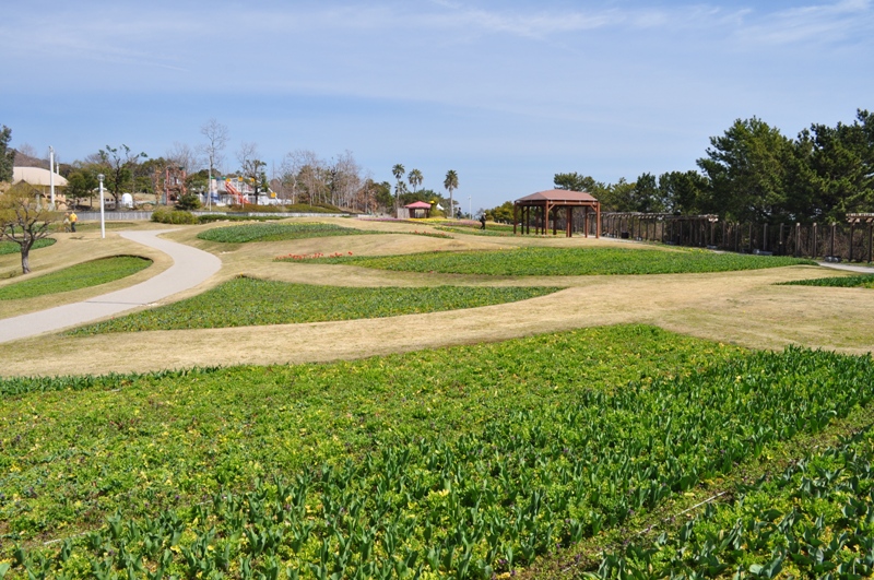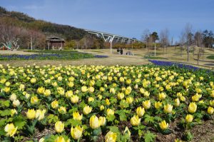 大地の虹(北)エリア 子供の森周辺の早咲きチューリップが開花を始めました(右写真)