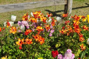 カラフルで模様も様々な交配種も咲き始め、より賑やかになりました。