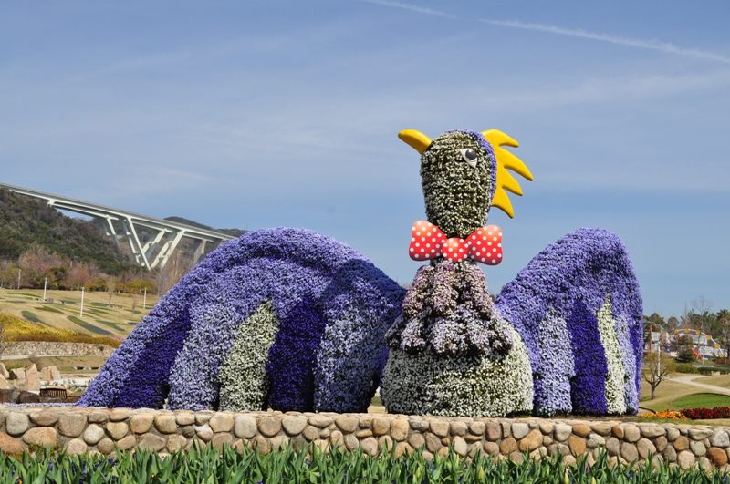 立体花壇「花火鳥」・「タコトピアリー」他 赤白青とカラフル ビオラ