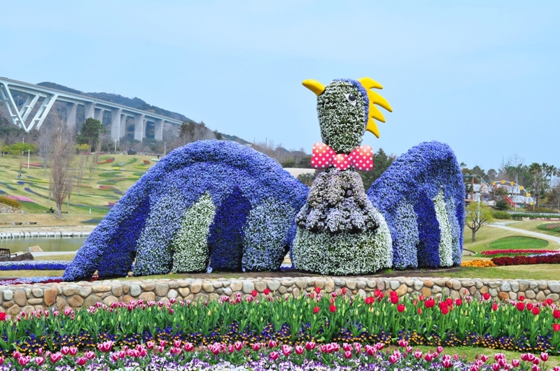 立体花壇「花火鳥」・「タコトピアリー」他  赤白青とカラフル  ビオラ