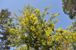 花の丘道 ふわふわした黄色のお花 ギンヨウアカシア(ミモザアカシア) 咲き始め