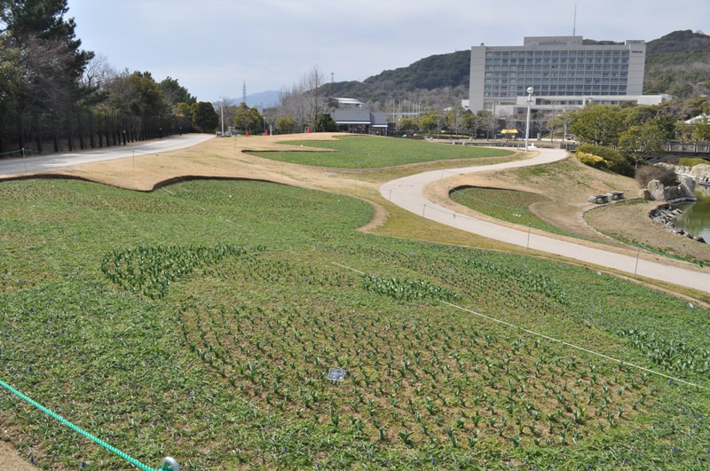 春一番の丘 見頃 (右写真中央は淡桃色のタイリョウザクラ(大漁桜))