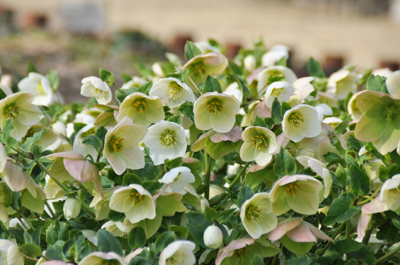 ニゲルとアーグティフォリウスから生まれた淡緑色のニゲルコルスや、ニゲルとリヴィダスから生まれた葉の模様が綺麗なバラーディアエなど、2月から見頃になるクリスマスローズです。