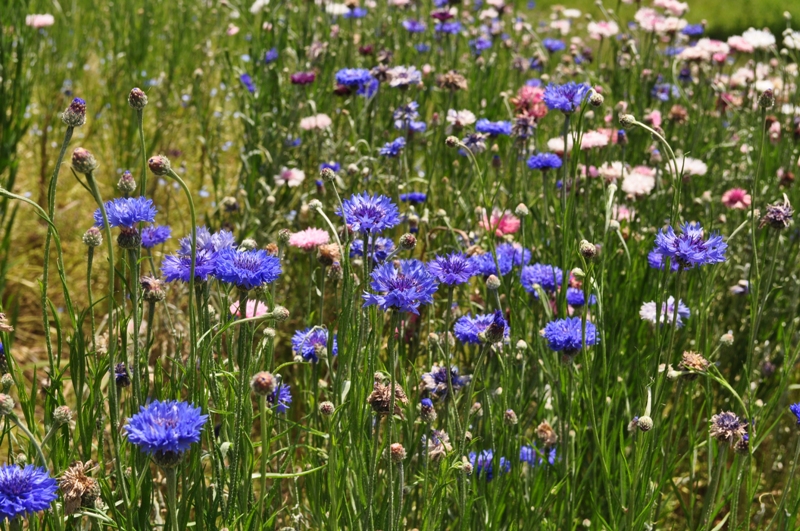 大地の虹側からみたポプラの丘 * ヤグルマギク(矢車菊)