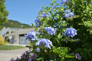 ビジター棟周辺 爽やかな青色の プルンバゴ