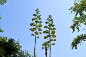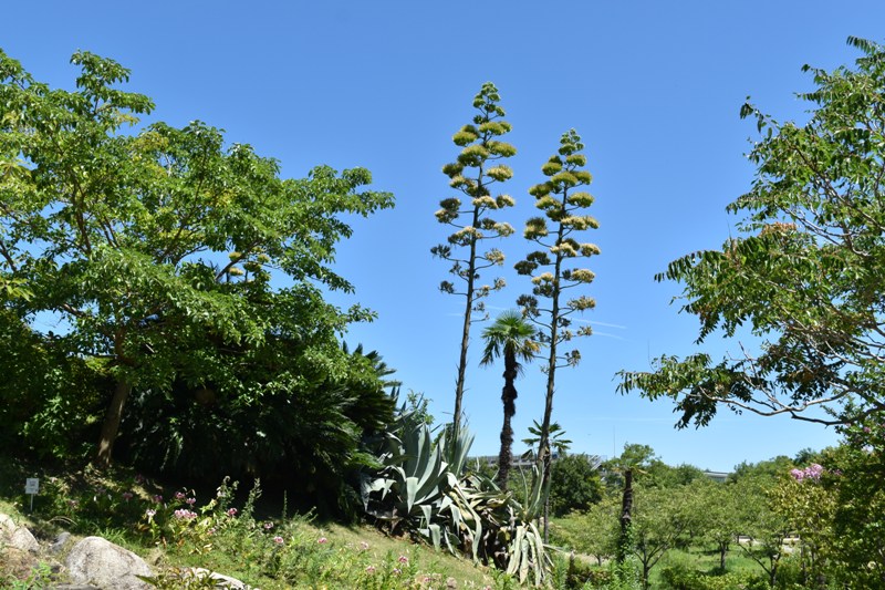 7月25日時点 せせらぎ橋からみた3本のアオノリュウゼツラン