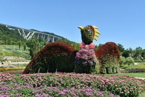 立体花壇「花火鳥」・「タコトピアリー」他 鮮やかな赤や桃・白色 ベゴニア