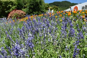 タコトピアリー周辺花壇 青と白が爽やかな サルビア・ファリナセア