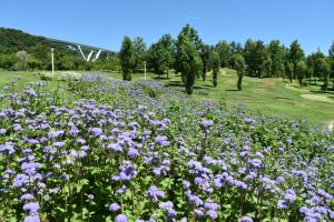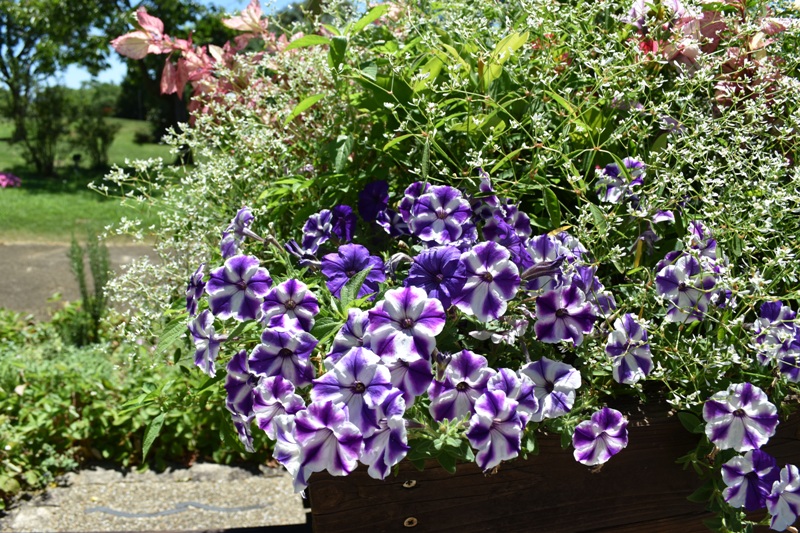 ビジター棟周辺・花の丘道 青・桃・白の華やかな ペチュニア