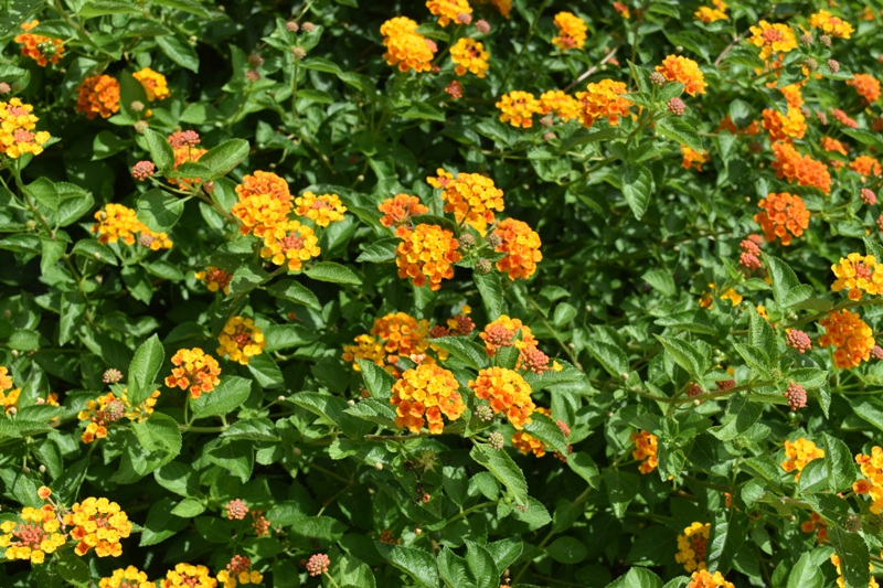 移ろいの庭周辺 丸く小さいお花がかわいい。橙→赤へ色変わりする ランタナ