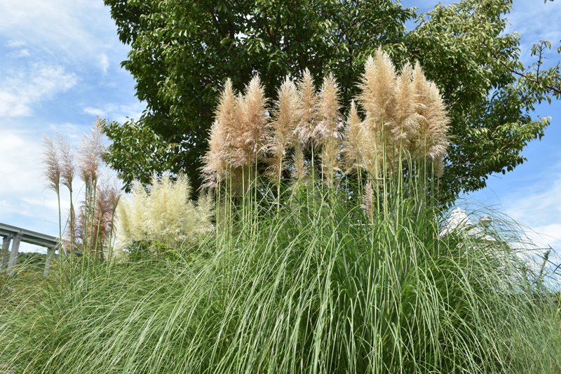 移ろいの庭周辺 槍のように立った大きな穂 パンパスグラス