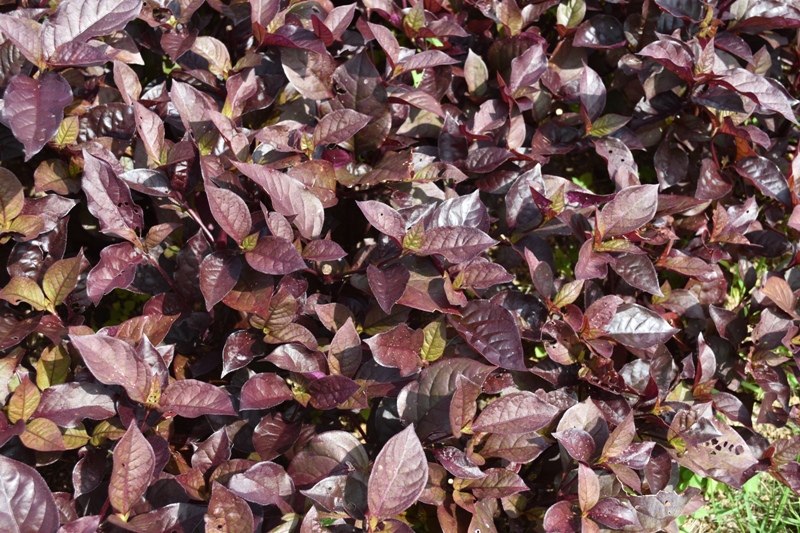 パームガーデン(カンナと同じ花壇) 濃紫色の葉が綺麗 アルテルナンテラ