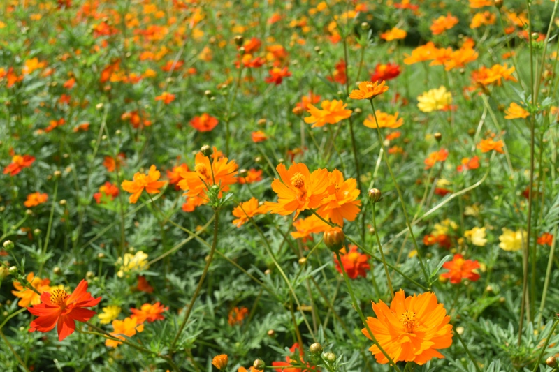 赤・橙・黄色のコスモスの仲間 キバナコスモス
